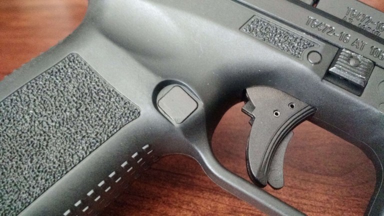 The trigger on the TP9SF is very nice. The trigger looks and operates like a Glock and other similar striker fired handguns. It has a smooth but a little long take-up before you hit the wall, then it has an extremely small amount of creep before it breaks very cleanly.