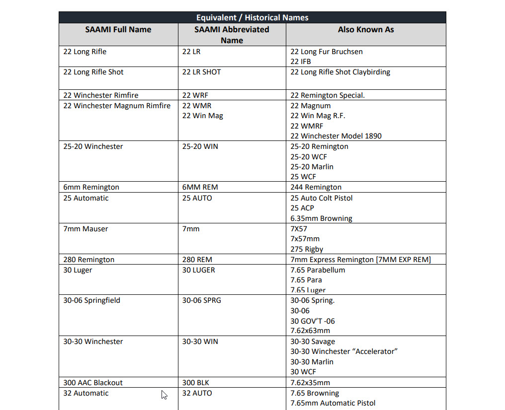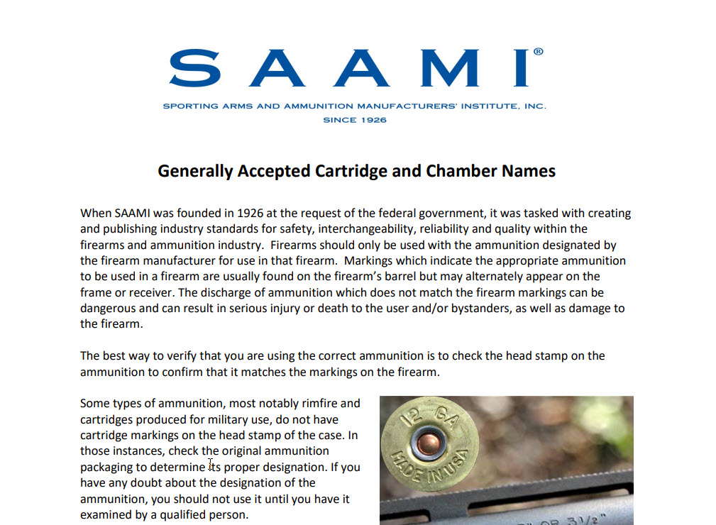 NEWTOWN, Conn. – The Sporting Arms and Ammunition Manufacturers’ Institute,®Inc., (SAAMI®), is pleased to announce that it has added two new web-based resources. These new documents help to clarify the interchangeability of certain ammunition in a specified firearm chamber, and identify the names of equivalent and historical cartridges.