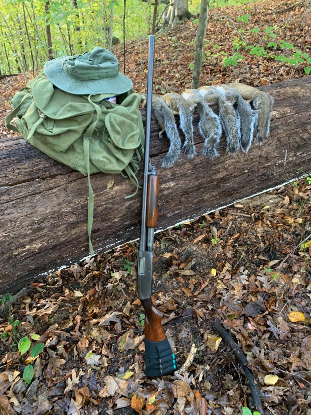 I got all six of these out of the same beech tree. I worked them for about 30 minutes taking them one at a time with my old trust 16 gauge. If you get more than one in a tree you can just about be as noisy as you want. They always assume the noise is coming from one of the other squirrels.