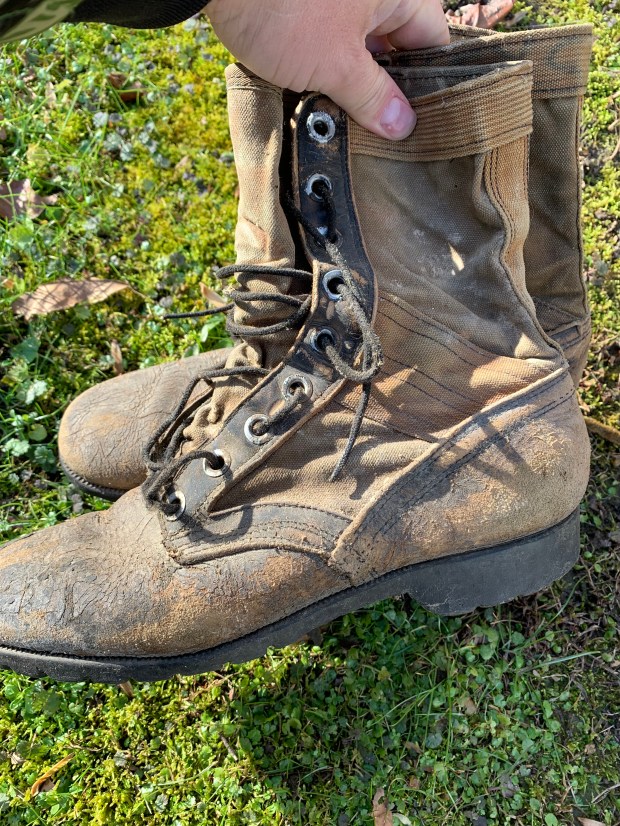 This pair of boots are pretty special. For one thing, they are genuine issued jungle boots. They were worn in combat for over a year in Vietnam by a Green Beret. This is the pair of boots my friend Brady wore and brought back. He is the kind of guy who never throws anything away.
