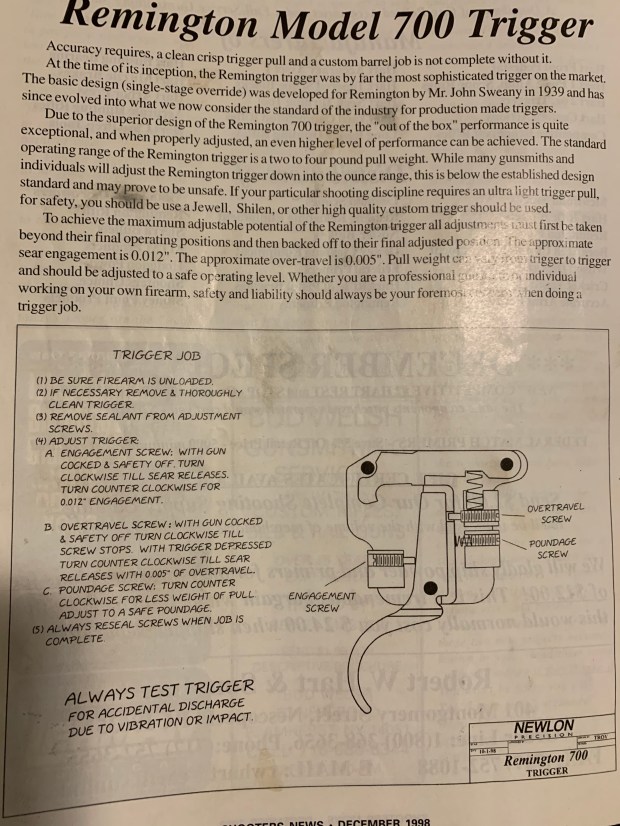 A very simple explanation on how to adjust the M700 trigger in a fool proof way. Share this: Click to share on X (Opens in new window) X Click to share on Facebook (Opens in new window) Facebook Like Loading... Related