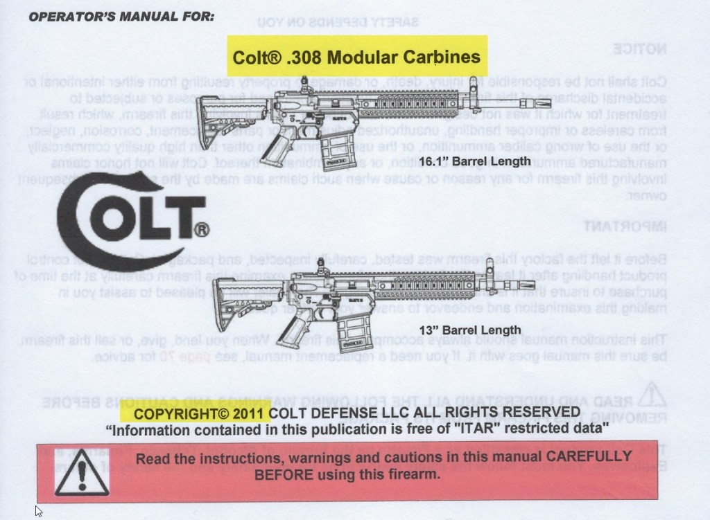 The article stated that the MSRP for the SP901 was going to be $2,129.00. Another interesting thing observed in the article was the use of images of a prototype SP901 that had an X prefix serial number and “Colt Convertible Carbine” on the lower receiver instead of “Colt Modular Carbine” as seen on the operator’s manual published in 2011.