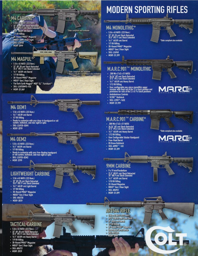 There was a second Military Rifle & Carbine Catalog from Colt in 2013. Interestingly, there was no mention of the CM901-16A or CM901-13A. In this second catalog, there was only ‘CM901’.