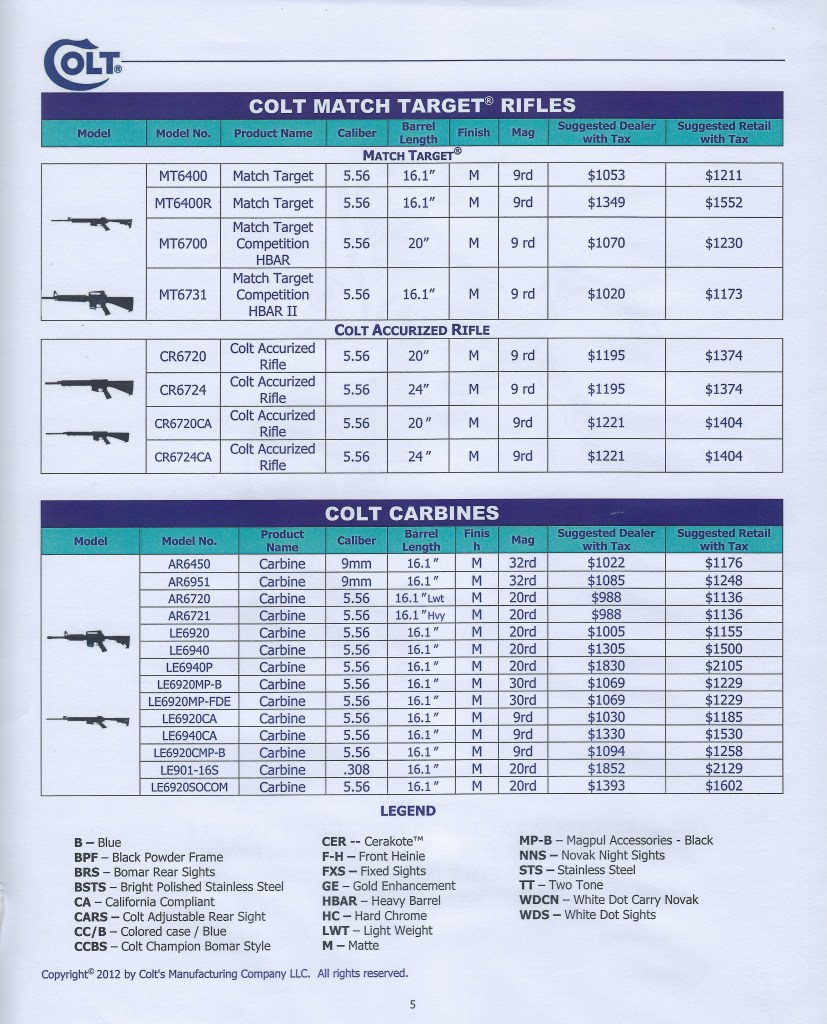 A December 14, 2011 article titled “Colt Modular Convertible Carbine SP901 Pricing” in ‘The Firearm Blog’ internet site was the first time that we saw an MSRP mentioned.