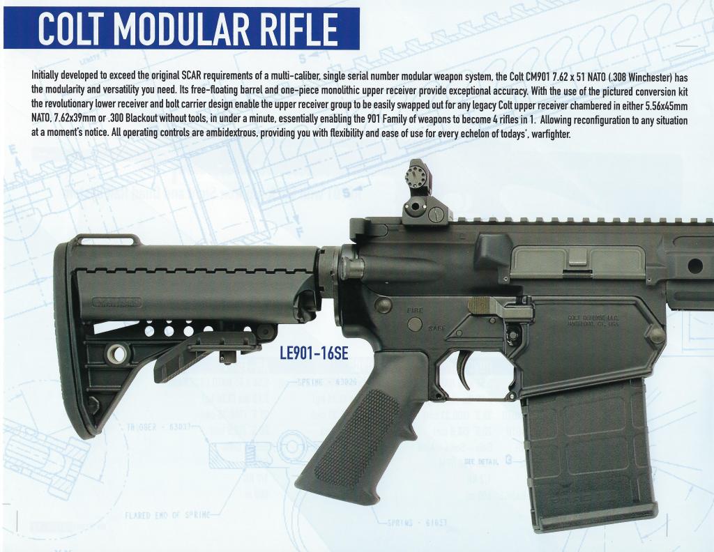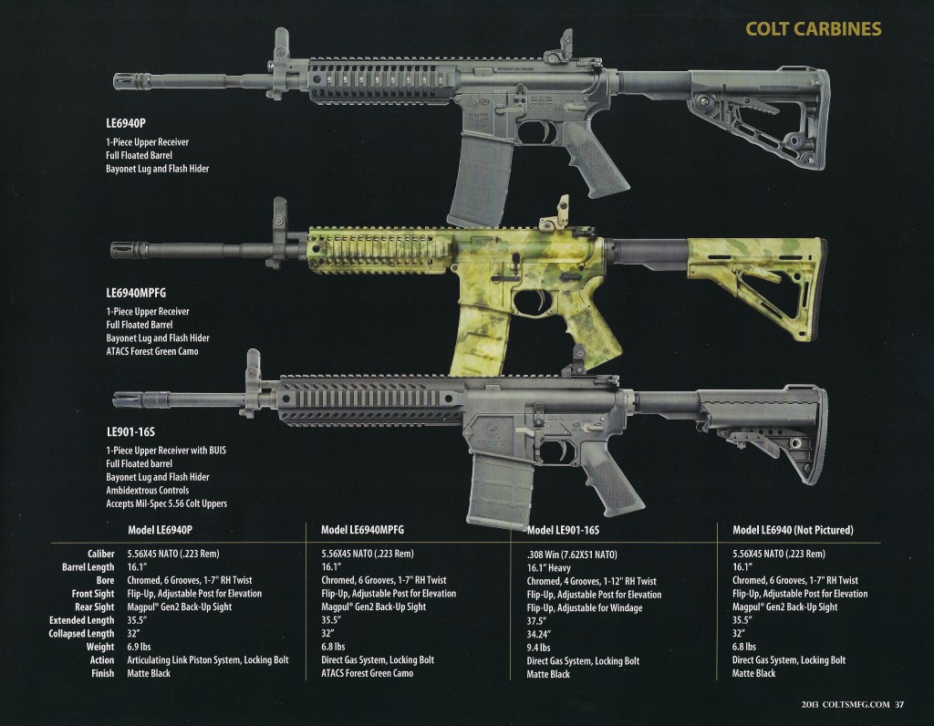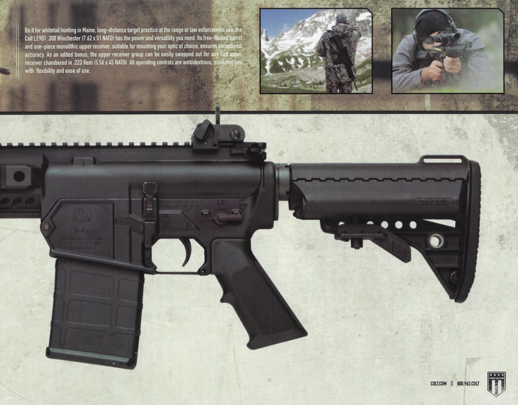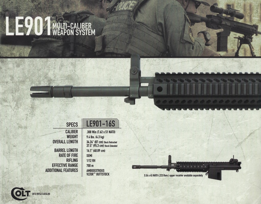 The 2012 Colt Rifle Catalog images below are split because the LE901 image layout took up two pages in the catalog.