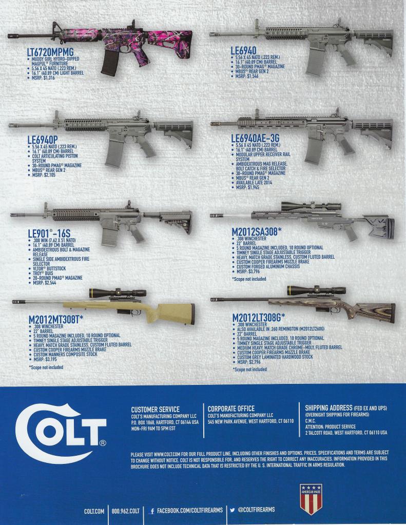 2013 provided us with at least four Colt catalog variations. In my catalog collection, I have two different military/LE catalogs and one rifle catalog.