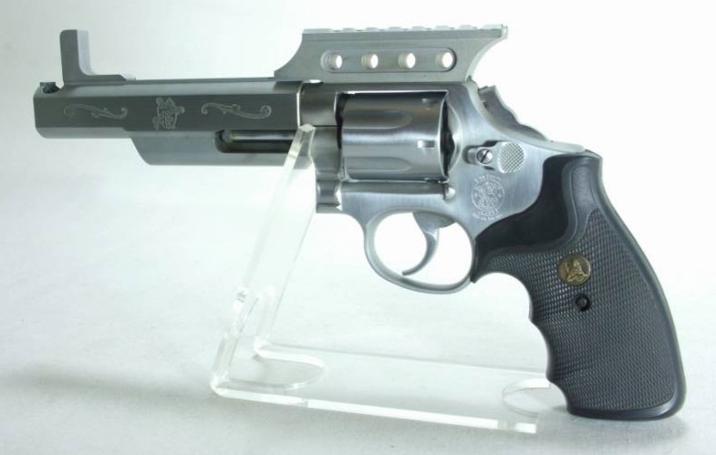 First up is a Smith & Wesson Model 64 modified for Bianchi Cup/NRA Action Pistol competition.