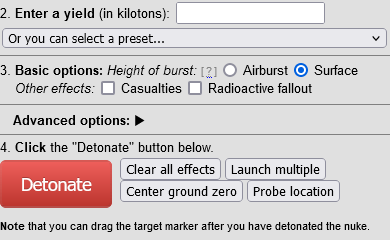 Since it’s 1983 all over again I thought I would share this with readers. This is a website with a sweet little interactive map that lets you detonate over the city of your choice. You can select yield and airburst or ground burst. Once you click detonate, you can see the blast radius and see where fallout will head.