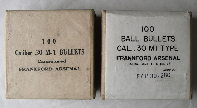 The 9-degree boat-tail bullets were manufactured in two styles, the 172 grain M1 (cannelured) and the 172-173 grain M1 Type (smooth). The M1 Type was used in 1924, 1925, 1929, and 1930 National Match ammunition production. The M1 bullet was loaded in 1928 and in all years between 1931 and 1940. After WW II, the M1 Type was used in all National Match ammunition. Even though most references list the pre-WWII bullets at 172 grains and the post-WWII bullets at 173 grains, they are essentially the same bullet. Lot to lot manufacturing tolerances will usually result in variances far greater than the nominal one grain official difference.