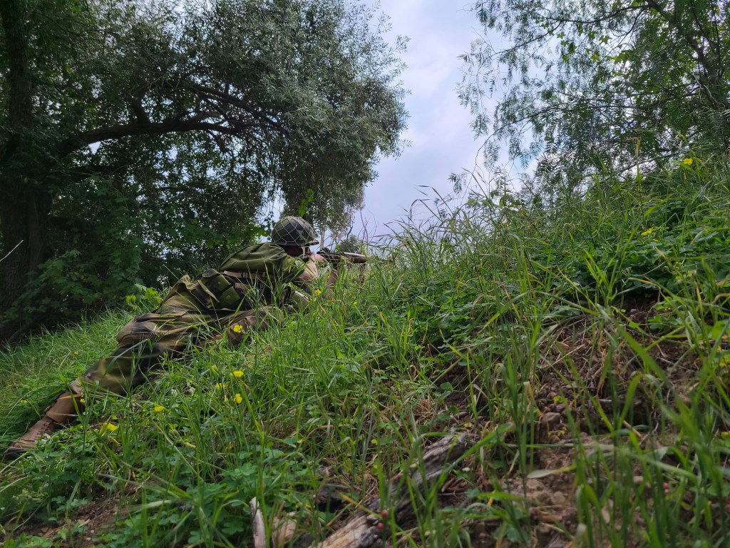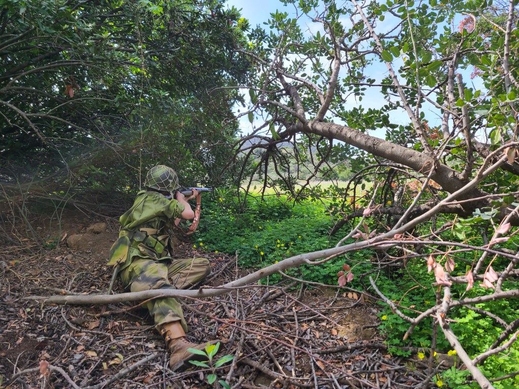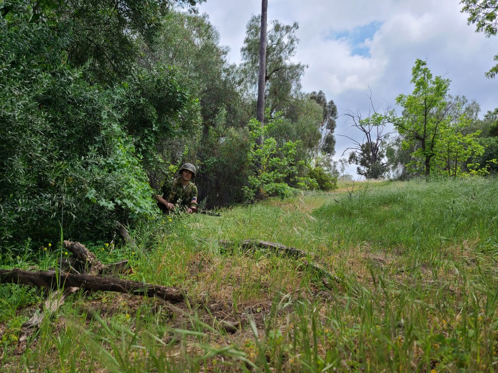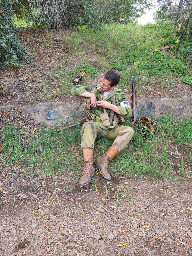 I get a kick out of this one because not only did it come out pretty nice looking but it is a good example of camouflage principles. Yes the patter and colors blend in well but the exposed arms and face really stand out as well as the white undershirt. Also the shape of the helmet contrasts with the surroundings.