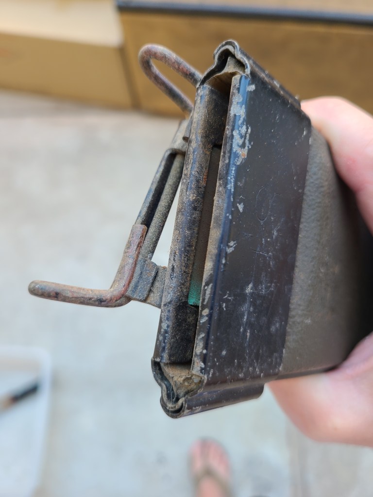 So the blade cleaned up pretty easily actually but the handle was REALLY corroded. I got impatient and tried a wire wheel but even that didn’t work too well so I soaked the handle by itself in a can of vinegar and hit it with a wire brush. I got most of it off but there still a decent bit on the back I can’t seem to get off. I even tried scrapping it with a screw driver but that didn’t work too well so I went back to the wire brush.