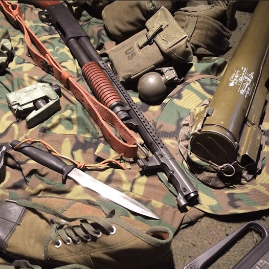 Awesome collection, especially the Claymore set and LAW tube. I’m jealous of some of that pile. Two modest suggestions: Add a few belts of M60 ammo and wear the boots out squirrel hunting enough to wear some of that polish off.