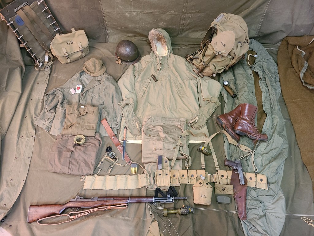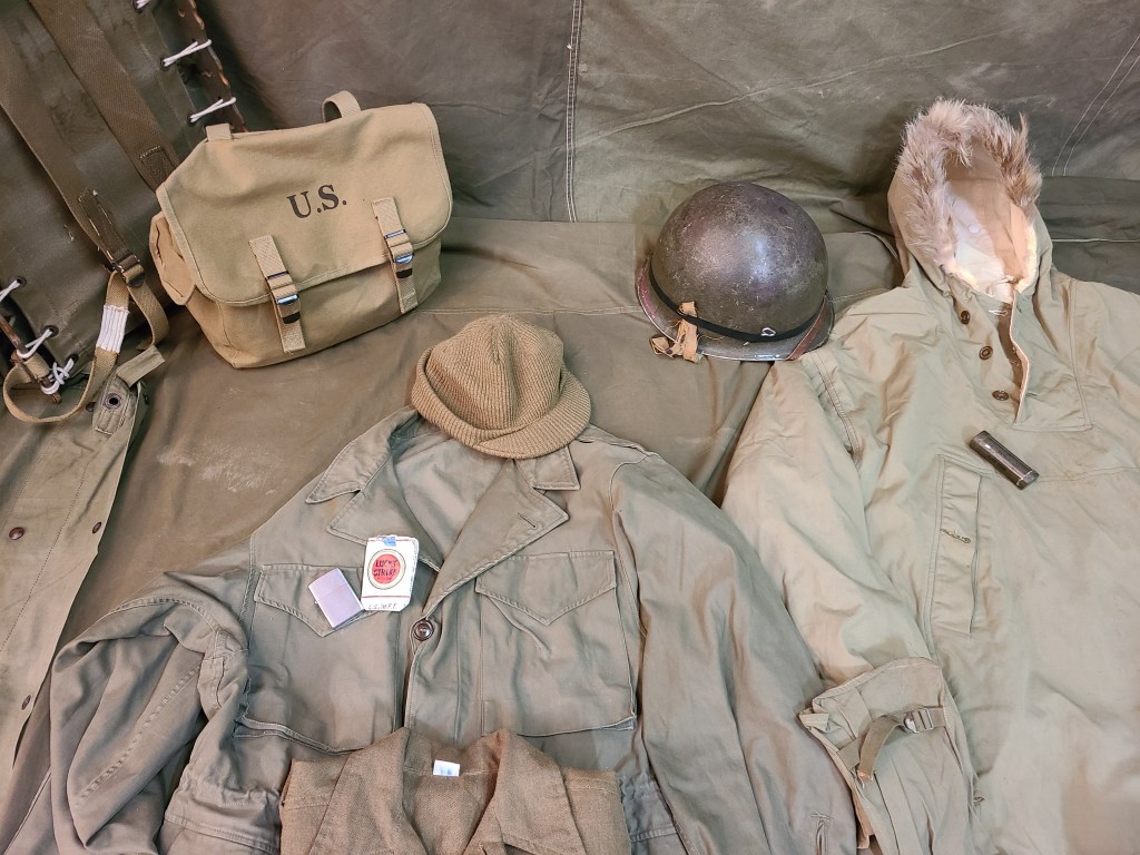 Parkas, sweaters and service shirts. I don’t see any of the pile liners (which are said to have often been in short supply or never shipped with the M1943 jackets. Since this seems to be the set up here and the bulk looks pretty similar to other photos that is how I drew the conclusion that the ski parka was worn over just the sweater and service shirt and not the field jacket as well.