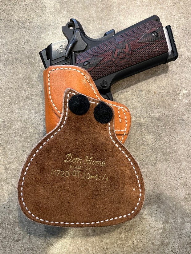 This is an outside the belt paddle holster, The paddle being leather, I prefer this over the newer ones with plastic or kydex. Much more comfortable. And it’s tight and high against the body. Just how I like a OWB holster.