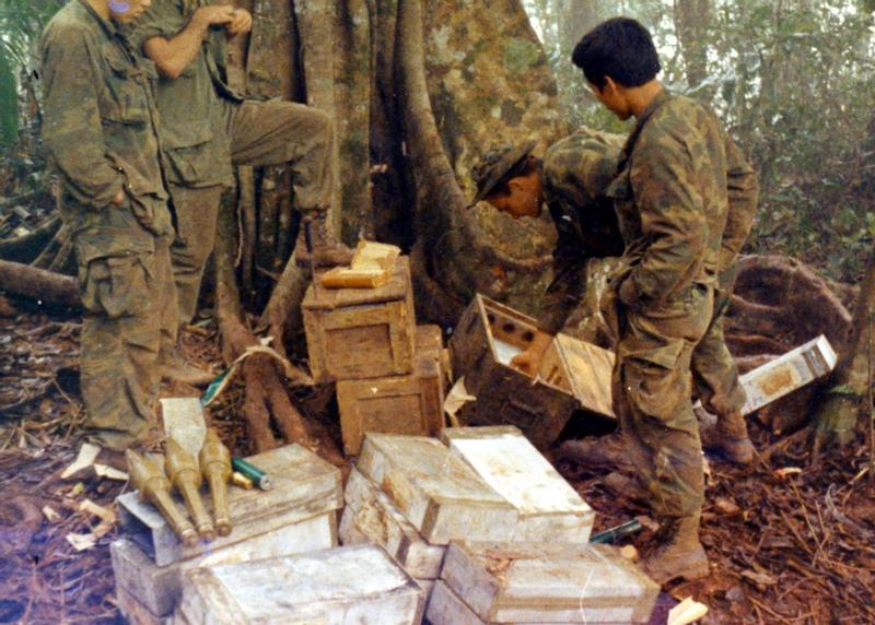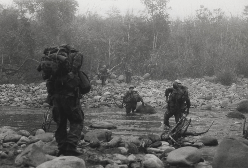 A last thing of note is the lack of helmet bands. There are plenty in the photos and some even look to be the “Army” elastic ones but most seem to have no band. I just point it out since the M1 helmet with helmet band is such a quintessential image of the Vietnam war but it isn’t always as common as one would assume. Also it looks like every chinstrap is clipped up behind the helmet.