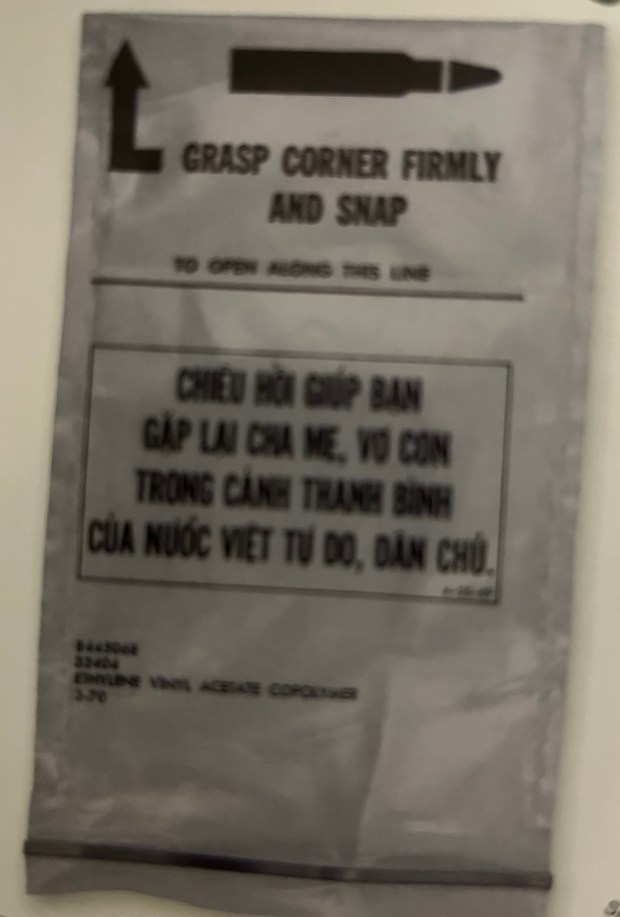 The message is in Vietnamese and basically says surrender to the troops of RVN and use the bag to get safe passage.
