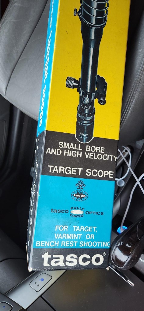 One of the guys in the vintage Unertl group shared pictures of this Tasco he purchased. Yes, I have said before, Tasco did make an external adjustment optic way back in the day. Reportedly from trusted reliable people, the glass and clarity on them are first rate. Made in Japan ground glass. The mounts and W&E knobs…not so much.