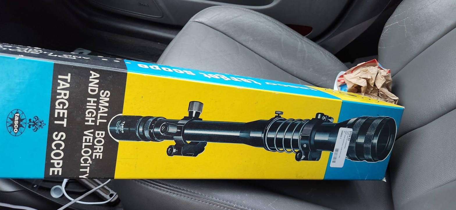 One of the guys in the vintage Unertl group shared pictures of this Tasco he purchased. Yes, I have said before, Tasco did make an external adjustment optic way back in the day. Reportedly from trusted reliable people, the glass and clarity on them are first rate. Made in Japan ground glass. The mounts and W&E knobs…not so much.