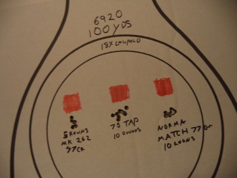 So today I took a 6920 Colt ( M4) and slapped on my trusty Leupold 18x target scope, and grabbed some ammo to do some accuracy testing. The only thing different about this gun, is it has the SSA trigger to help with the groups and a Gunfighter Charging handle along with a standard Colt ambi safety that has no effect on its barrels accuracy. The gun still had the side sling swivel, and I even left a sling attached, and the factory hand guards. Other than the trigger and scope to help on my end, the gun had no other upgrades to the barrel. It was as it comes from Hartford. Gun was fired from a bench with front and rear bags using the Leupold 18x target scope I use for accuracy testing.