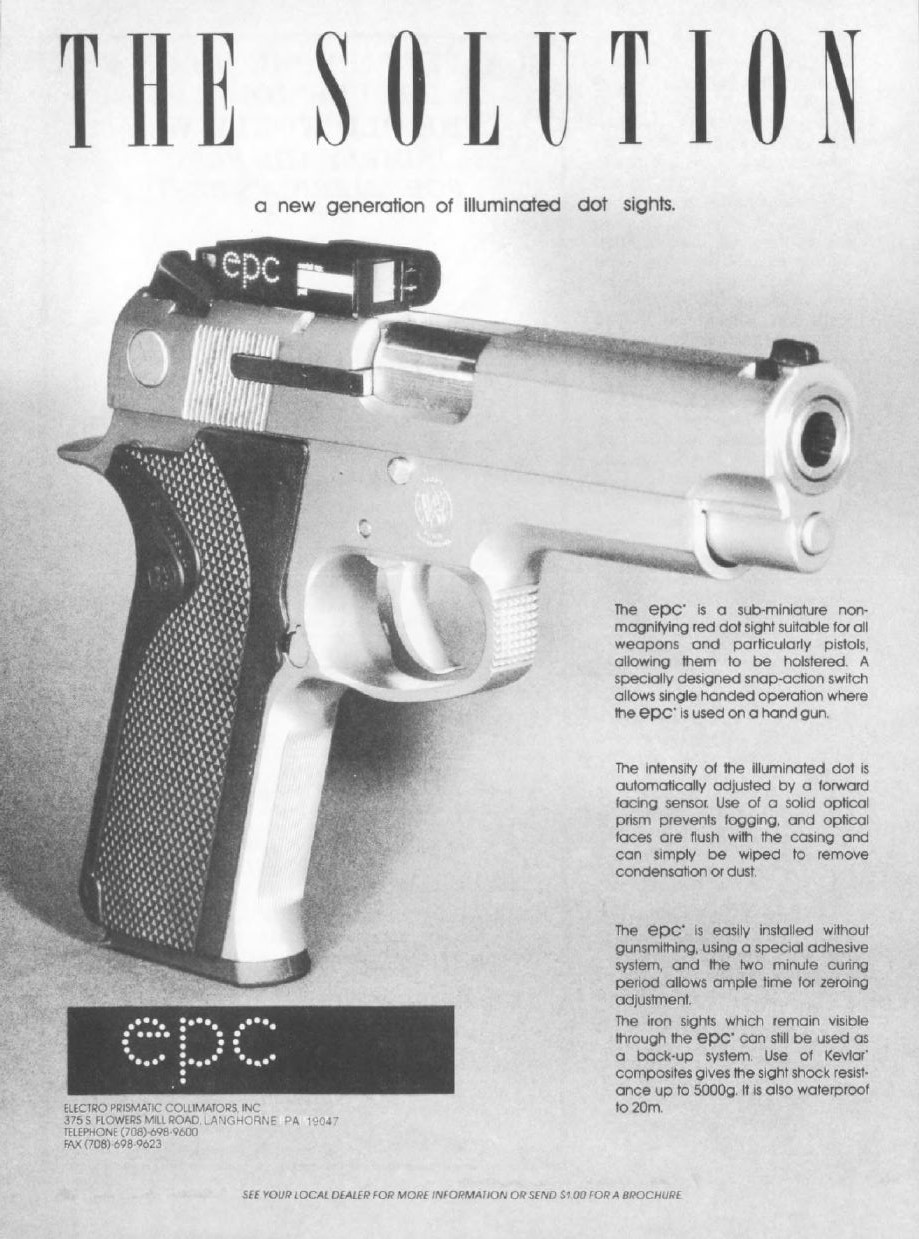 Here is a blast from the past – the 1991-vintage Electro Prismatic Collimator (EPC) Sub-Miniature Red Dot Sight from Ring Sights. The EPC was based upon Ring Sights’ basic solid-glass LC-7 optic, the forerunner of the LC-14 used on the FN P90. The EPC’s Planar Doublet Reflector (PDR) was made 8 mm square with aContinue reading “Retro Sub-Miniature Red Dot Sight -The EPC”