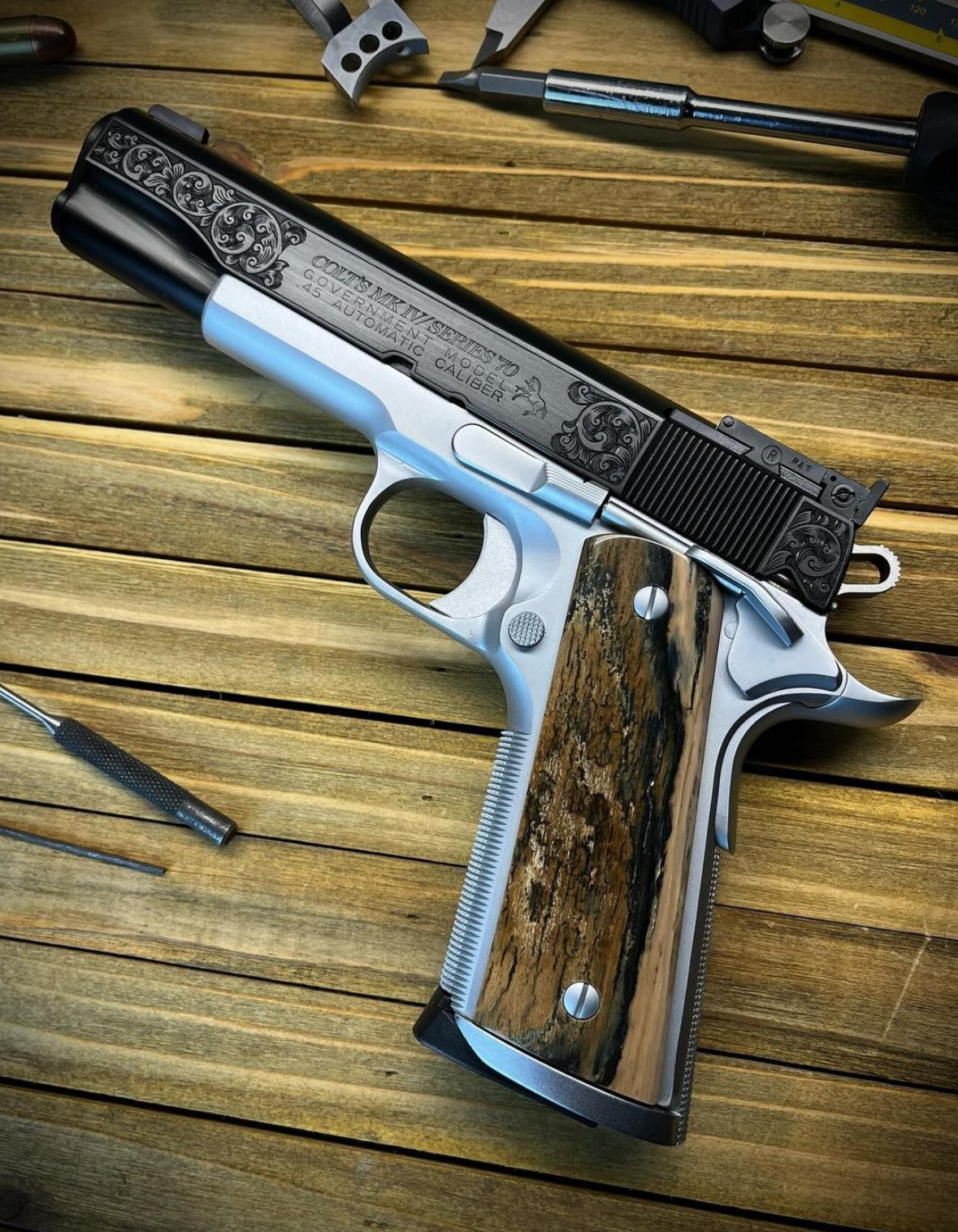 from pistol_purview Colt 70 series 1911 in .45 ACP —an absolutely drum tight shooting machine with a Barsto hard fit barrel, hand checkering, blended beaver tail, and Bomar rear sight, by retired police officer Bill Thompson (Bill’s Custom Automatics). This gun came out of Anchorage Alaska, and was made by Bill when he lived there,Continue reading “Bill’s Custom Automatics Colt”
