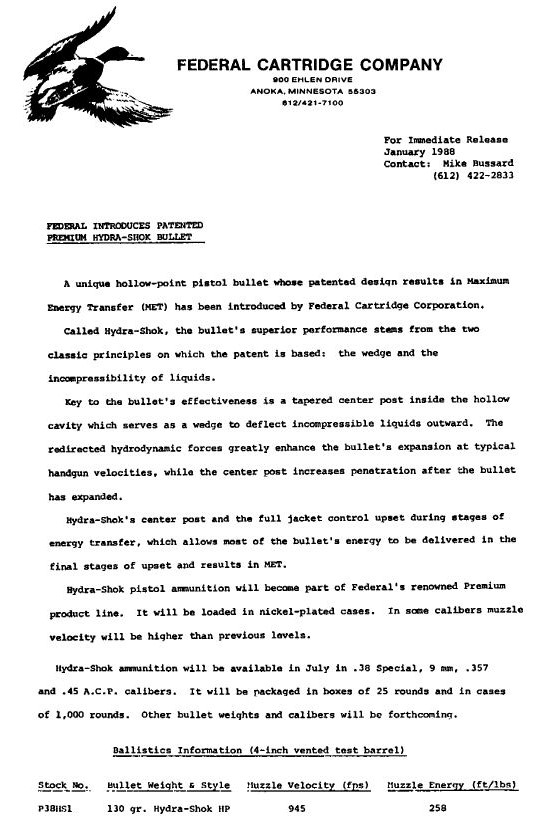 Federal announced their new Hydra-Shok lineup in January 1988.