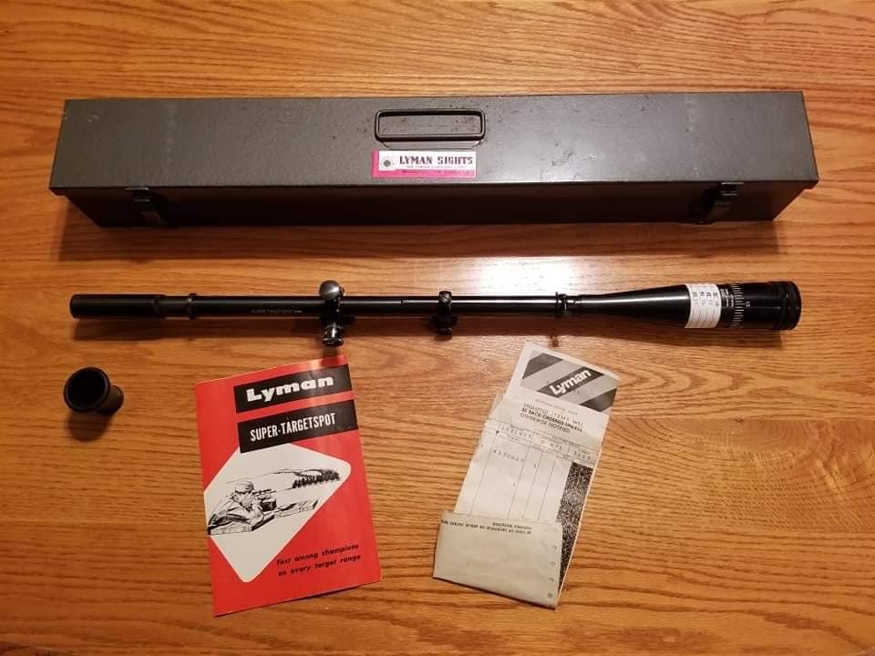 Some lucky SOB in the vintage optics group turned this up at an estate sale. Still in box with paperwork. A 20X super target spot Lyman,