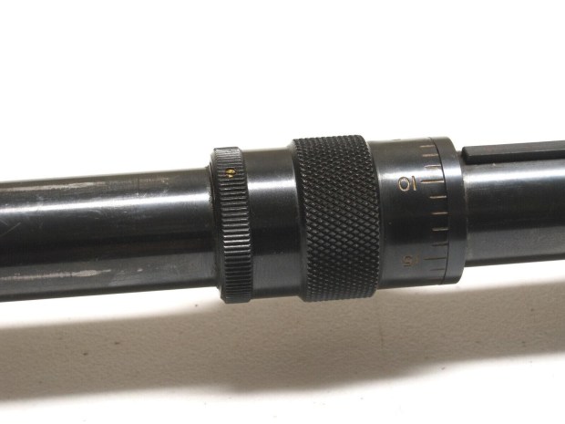 De Simone scope with variable power. These were produced in California the ’60 or ’70s, and were of the highest quality. On the left side there is a movable slide that would change the power.