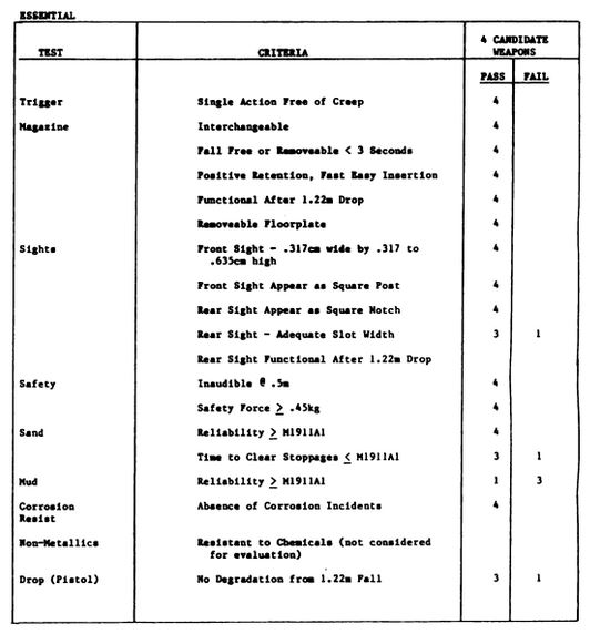 The final test reports on the 9mm candidates were received by their suspense date of 24 September 1984. In the end, only the SIG-Sauer P226 and 92SB-F were considered to have passed all of the tests.