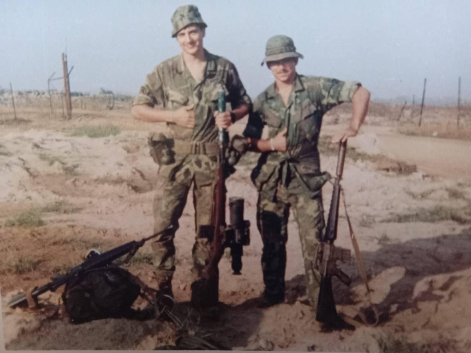 A very cool picture from 1969 of an Army sniper in the 25th ID. Youc an see him with the XM21 with night vision optic and suppressor. He mentions he had the Refield/Leathwood ART scope in the rucksack beside him. His spotter poses with his suppressed M16.