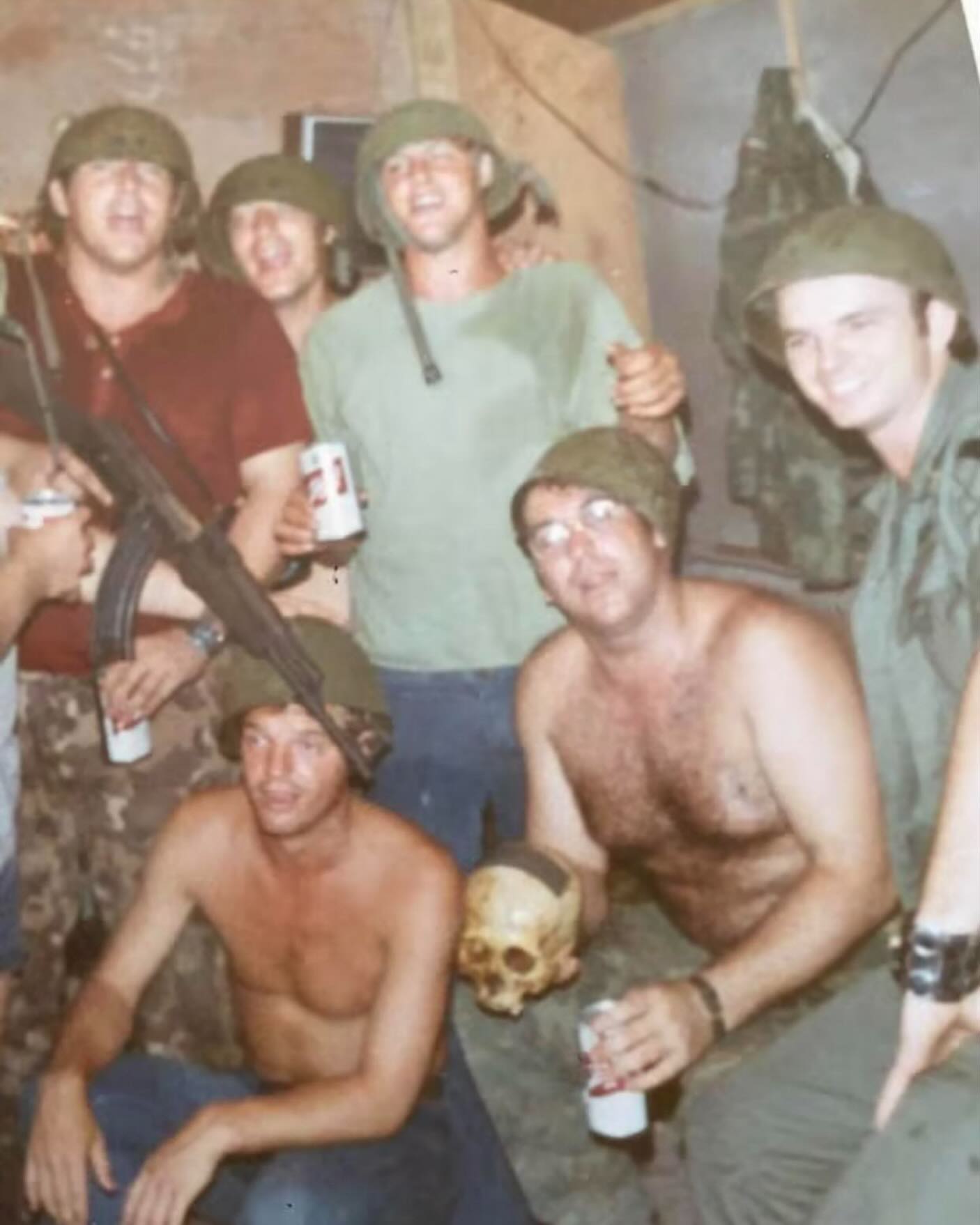 A group of Rangers having a little in Vietnam in 1971. Drinking booze out of a dead communist’s skull. The good old days. Some silly, whimsical fellows.