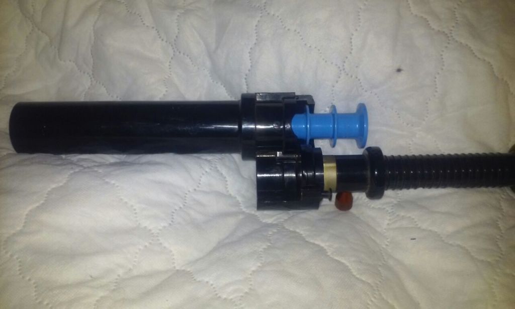 Three different variants can be found. The prototype Short Stops used a black plastic cap taken from a ball point pen. Early production Short Stops used a yellow Speer shot cup, while late production used a red plastic cap.
