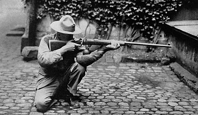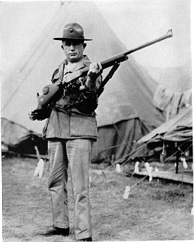 Starting in the early years of the 20th Century Marine skill with small arms would strike fear into the hearts of German infantrymen crouched in the muddy trenches of France, insurgents lurking in the banana plantations and sultry jungles of the Caribbean, and Japanese soldiers hunkered down in musty coconut log pillboxes and caves throughout the Pacific. Later, in inhospitable lands on the mainland of Asia, Marine marksman would disrupt enemy lines of communication with long range rifle shooting that would become legendary. On the more friendly fields of fire, at rifle ranges around the world, they would win shooting tournaments in numbers well out of proportion to the small size of The Corps.