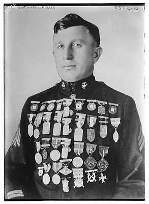 After 30 years service Fisher retired from the Marines, in June of 1941, as a Gunnery Sergeant, the second highest enlisted rank in those prewar years. He then went to work as a training officer for the Toledo Ohio Police Department. Three months after the Japanese attack on Pearl Harbor he found himself again wearing Marine Green and in charge of the rifle range at the Marine Corps Recruit Depot at Parris Island, South Carolina. He was able to use his vast knowledge of shooting to make recruits, many who had never touched a firearm before, into fearsome riflemen. Fisher was promoted to the rank of Chief Warrant Officer in September of 1943.