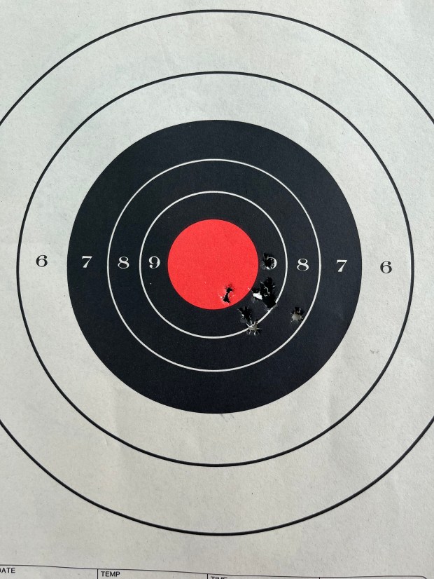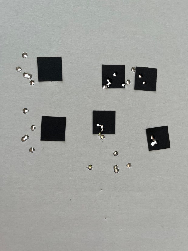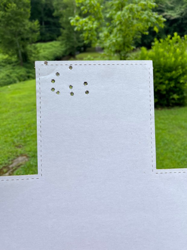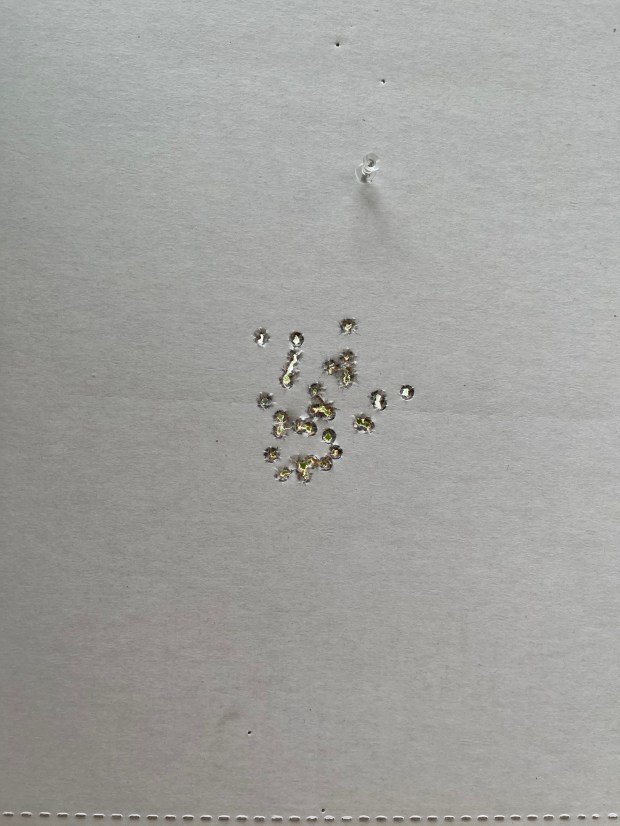 This group fired at 25 yards with “Green Tag” from 25 yards off the bags,
