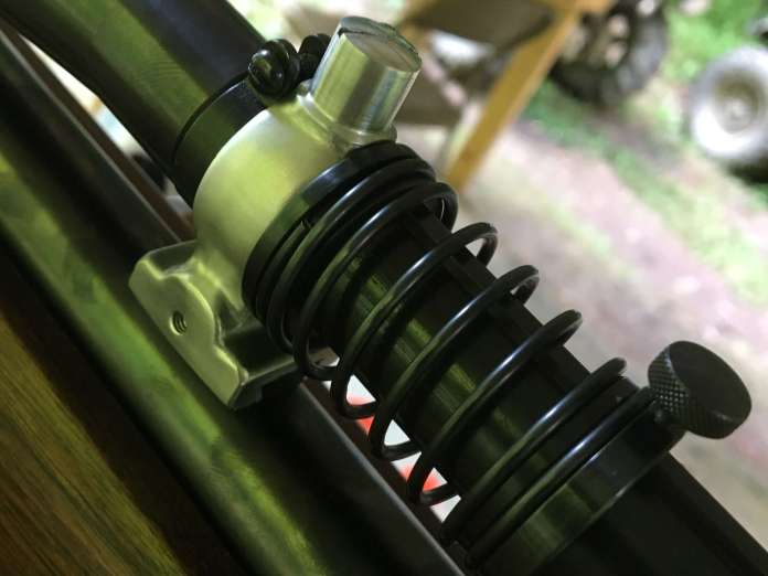Below is the rear mount. Here you can see the external adjustments and how they move the rear of the tube. The micrometer turrets are very precise and repeatable. And very tough.
