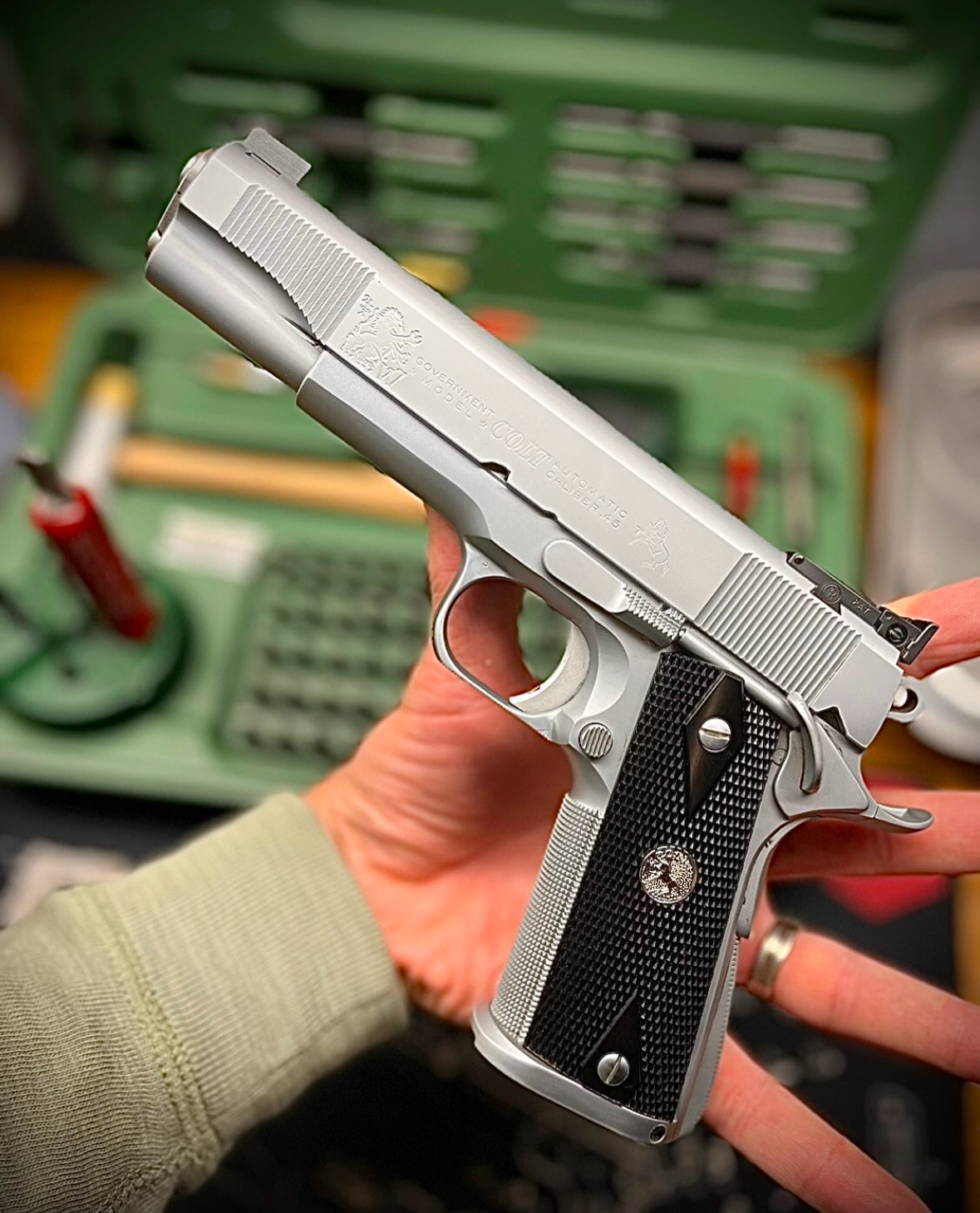 From 1911_purview Hard chromed 70 series Colt chambered in .45 ACP built by Dr. Steve Woods out of Ellicott Maryland. The gun was checkering by Pete Single, who lived down the street from Steve. Steve was unique in that he used to charge clients $60 for phone consultations. I guess he liked the idea ofContinue reading “Steve Woods Custom Colt”