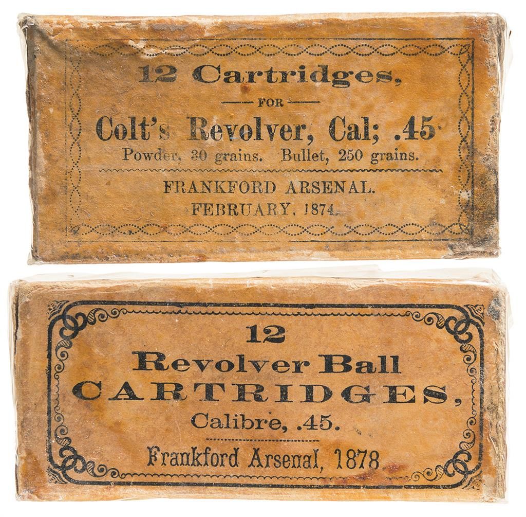 Most folks don’t realize that the US Army rarely issued the .45 Colt cartridge, and when they did, it was often not a full-power load. Mike Venturino has a January 1874 vintage box of Frankford Arsenal .45 Colt ammunition. The box label clearly indicates that it was only loaded with 30gr of blackpowder, not the 40gr seen in commercial ammunition.