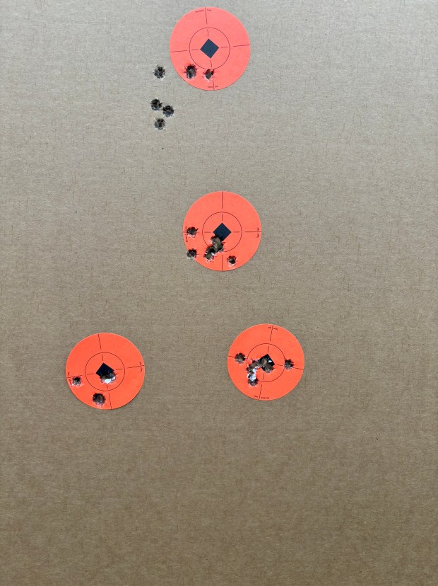 Top group is from dogshit Speer training ammo. That was the first group and I wasn’t impressed. It was what I expected from it. Also had two failures to feed. Slide locked back on a loaded mag.