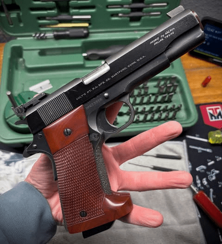 Who was “Akuriz by Wilson.” The Custom Handguns page on Facebook (chocked full of old guys) failed me, so I’m reaching out to the universe. I’m probably going the wrong direction since you people are 30-40 years old…but here’s what we know: The smith’s initials were T.W. and his shop was in Dallas TX. The gun tells us that much. Could it be Tom Wilson who apparently manufactured a sear jig around the same time? The godfather @custom_handguns is looking into it. I’ll report back. Grips were unmistakably handcrafted by the venerable Lew Sanderson