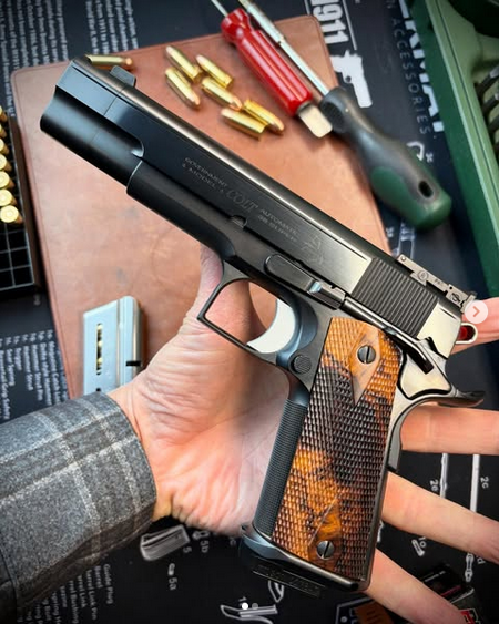 his gun is a dream come true for me. Two years ago I worked up enough nerve to call the legendary George Huening to ask him if he would build me a gun. He said what do you want, and I said I’ll leave it completely up to you, but I would like for it to be a carry comp. Well this masterpiece subsequently showed up late last year. I’ve shot it twice, and now I just sit and stare at it all day. Never heard of him? GH is one of the most brilliant pistolsmiths of all time. Prior to his foray into gunsmithing George was crew chief for Indy driver Gordy Johncock, who famously held off Rick Mears (in a hobbled car plagued with understeer) to win the 1982 Indy 500. So there’s one world title under the man’s belt. The other 18 came at the hands of Doug Koenig, the most accomplished Bianci Cup champion of all time. Who do you think builds Koenig’s guns? Yup, the consummate man behind the man, George-fucking-Huening, that’s who. What’s he like? He’s a total gentleman and the virtual definition of humble. Ask Jason Burton or Pete Single who their gunsmithing hero is. That’s all you need to know. If I had to run into my house (while it was on fire) and come out with one gun…..you’re looking at it. This 1911 is now completed with a set of hand checkered double diamond grips by the venerable Jon Aho