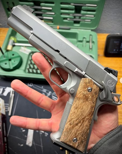 From 1911_purview Caspian in .45 ACP by Greg Copeland (Copeland Customs) out of Arkansas City Kansas. Greg made serious guns for serious shooters and that is apparent in this stout build. The slide on this gun surgically articulates on the lower like a well worn European P210. In other words, it’s slick!! This purpose builtContinue reading “Copeland Customs Caspian”