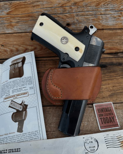 Vintage Milt Sparks No. 4 Yaqui Slide for the Colt 45 1911. This is from the early Idaho City Days. A favorite holster style worn by Col. Jeff Cooper while on the range and in the classroom. Available on the site..👇🏻