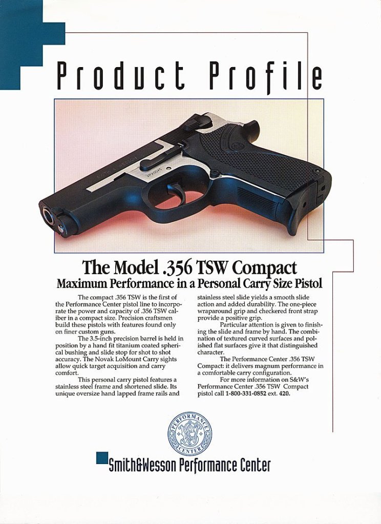 Besides the “Pocket Rocket” Model 940 and the Model 3566 Limited, there was a really nice Open Division Model 3566 variant built in conjunction with Briley. (Briley’s head pistolsmith Claudio Salassa and the S&W Performance Center’s head pistolsmith Paul Liebenberg had worked together back when they lived in South Africa.) However, no one in the US really wanted to compete using anything other than a M1911 variant once the widebody frames became available. S&W also briefly offered a couple of Model 6906-sized pistols in .356 TSW known as the Model 3566 Compact.