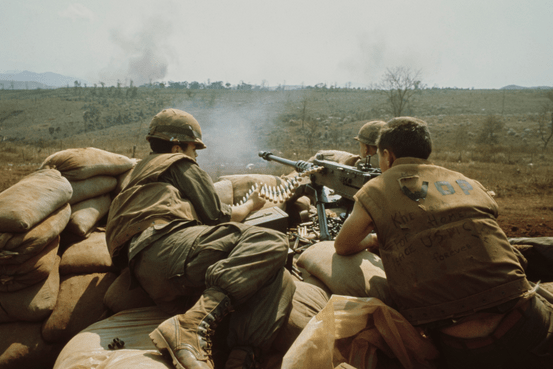 Dad told me a story several times over the years about a night in Vietnam. It was really stuck in his head since he was almost killed and was wounded during the same attack. Dad was in an artillery unit that would set up on hills with temporary fire bases. One night the base was almost overrun. While on the sand bagged perimeter firing at a human wave like assault of NVA he saw the M2, .50 caliber machine gun start enfilade firing on the advancing line. In the light of the flare he said he saw one of the NVA soldiers literally cut in half right above the waistline while running and the legs continued on a few steps without the upper body. A 50 round entering above the hip from the side crossed to the other side, cutting him right in twain.