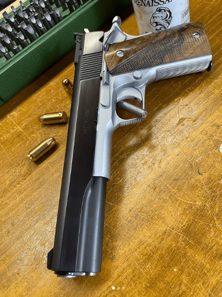 In the late 1970s and early 1980s 1911 long slide pistols were all the rage, that is until comp guns made the scene. This is a very special gun, made by two legends. Swipe all the way to the left to see Ichiro’s Nagata’s picture of the gun as published in American Handgunner magazine. My iPhone 6 sucks but I do what I can. The cocking serrations and trigger guard are angled, so I felt the grips should be too. These stunning stocks were made by my man @seans_ugly_grips_ His hand checkered grips are everything but ugly.