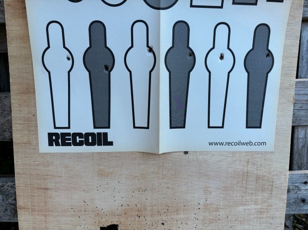 I’m sorry I don’t have more groups at different ranges but that Super match mid-range ammo is extremely hard to come by and I try to save it. All I had on hand otherwise was some PMC, which I used four the off hand and double action attempts.