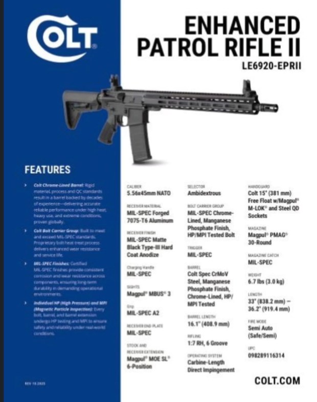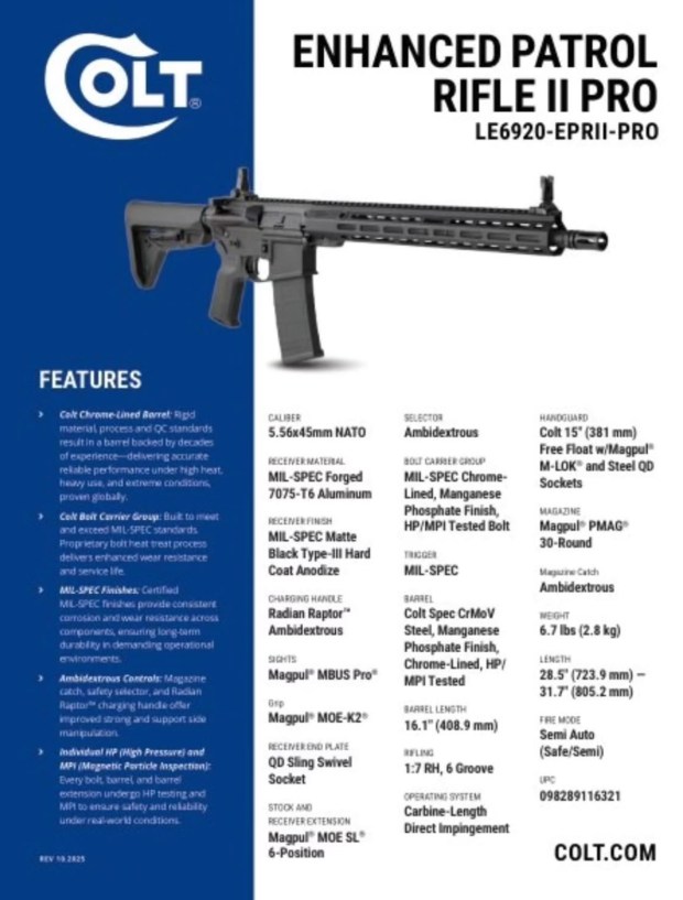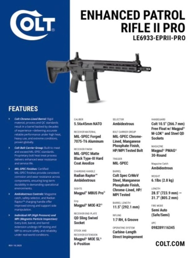 “Colt is excited to announce the release of four new SKUs in the Enhanced Patrol Rifle lineup — the EPR II and EPR II PRO models — now live on the Colt website and available for customer orders and shipment.