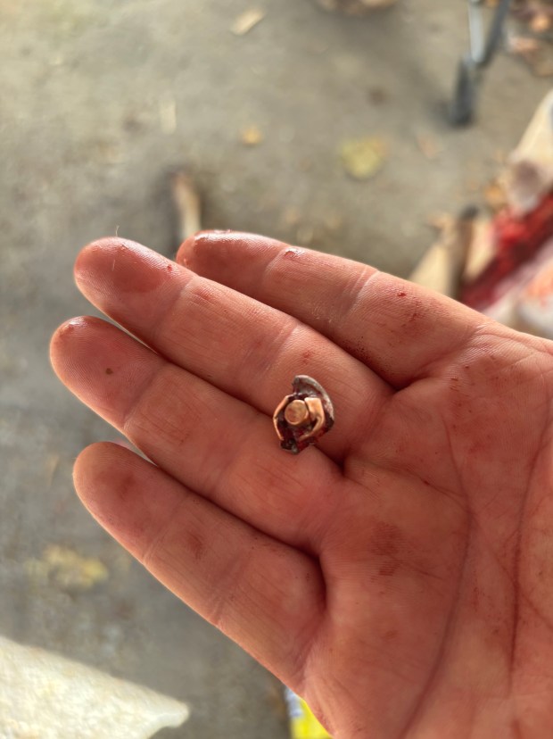 Anyway. Here is some real world results from this past week of deer season. This was the hole of a shoulder shot from 156 yards. The ammo was the old black coated TAP round. The 75 grain hollow point boat tail ” T2″ bullet has always been extremely satisfying on full grown deer.