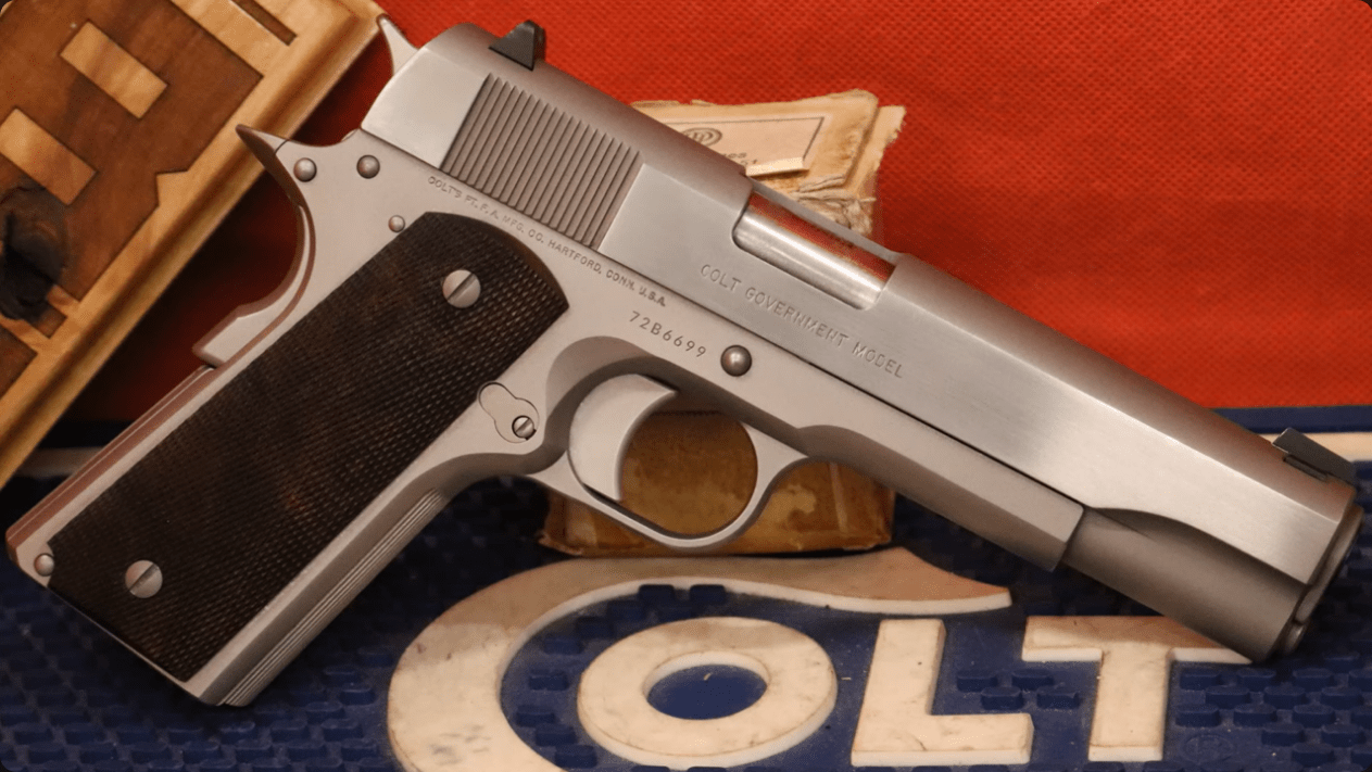 Built in stages, by 2 great shops, Novak’s and Jim Garthwaite both touched this stainless Colt MKIV 70 Series Government Model to make this slick Retro 45!